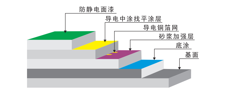 3、 防靜電底漆:采用滲透性及附著力特強的防 靜電環氧底漆滾涂一道,增強表面附著力;