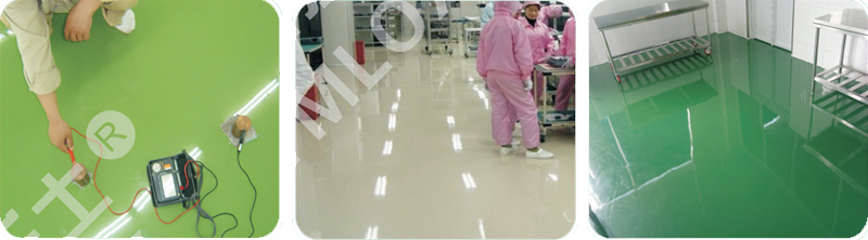 電子、微電子、通訊、計算機、精密儀器、 紡織、印刷、粉體化學、有機溶劑、瓦斯等一 切需要防靜電的工廠的墻面、地坪及儲油罐。